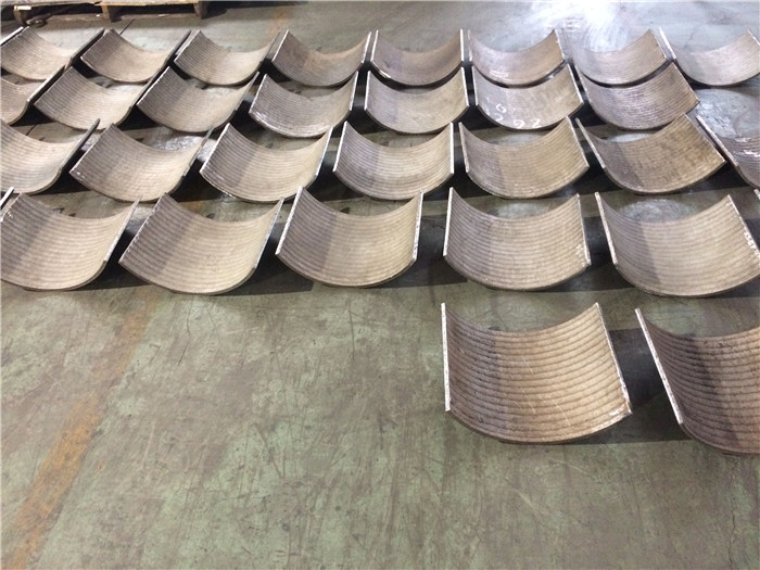 KNM60耐磨復合鋼板可以切割,調平,打孔,彎曲和卷曲,它可以制成平板, 弧板,錐板,圓筒等。切割好的復合板可以拼焊成各種工程結構件或零部件。 復合板還可加熱用模具壓制成復雜形狀,用螺栓或焊接固定在設備上,更換維修方便。